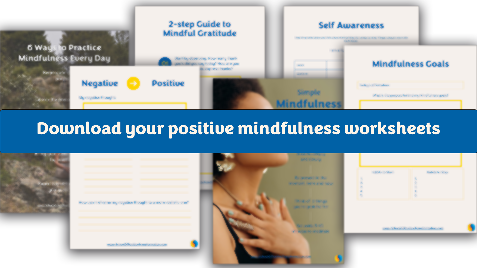 When you download our FREE Positive Mindfulness Worksheets you get a powerful combination of resources to support your personal growth and well-being. These valuable tools will help you cultivate mindfulness, embrace gratitude, and embark on a path of positive transformation.