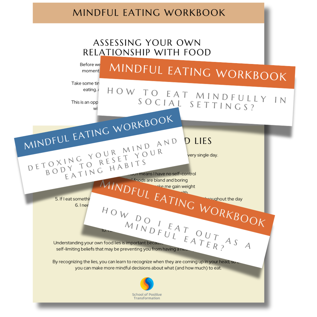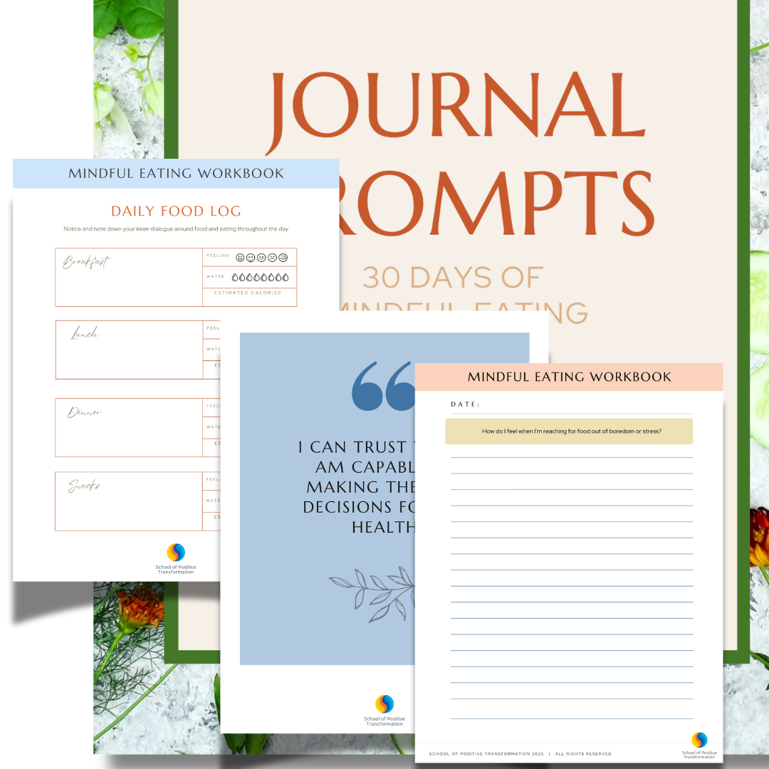 At the School of Positive Transformation, we believe everyone deserves a chance to pursue their dreams without barriers! That’s why we’re thrilled to offer you this FREE workbook for you to restore a mindful and healthy relationship with food which is vital in the creation of a solid mind/body connection.